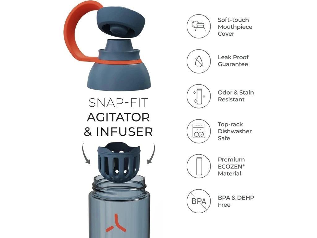 Lekka, wytrzymała i stylowa butelka na wodę lub napoje sportowe. Idealna na siłownię, bieganie i codzienne użytkowanie.