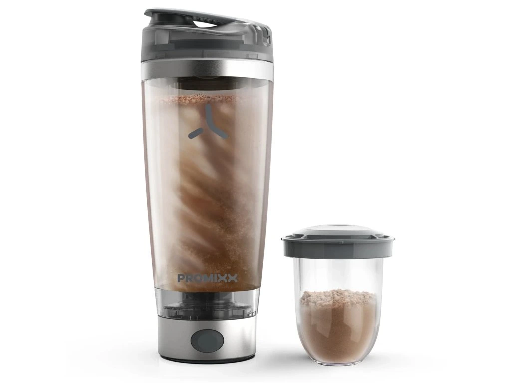 PROMiXX PRO Stainless Steel - wydajny elektryczny shaker do super gładkich, odżywczych napojów proteinowych za naciśnięciem przycisku. Zaprojektowany do napojów proteinowych, suplementów w proszku, jajek, omletów, kawy i innych - wszystko, czego potrzebujesz do codziennego odżywiania. PROMiXX jest wszechstronny i może być nawet używany do mleka modyfikowanego lub karmienia zwierząt domowych.